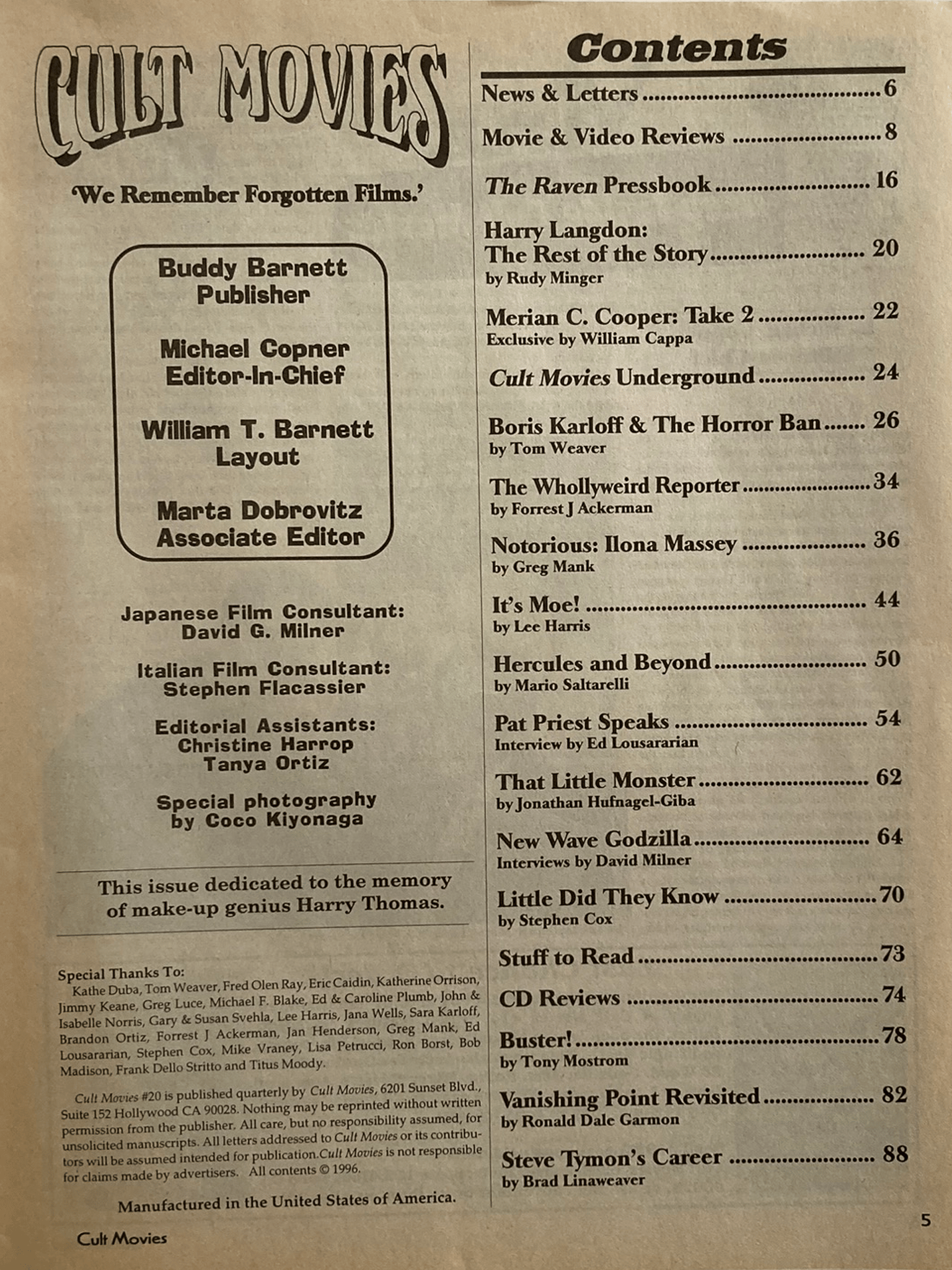 Cult Movies #20 featuring Ed Wood, Hercules, Boris Karloff and more! Each issue is bagged for protection.