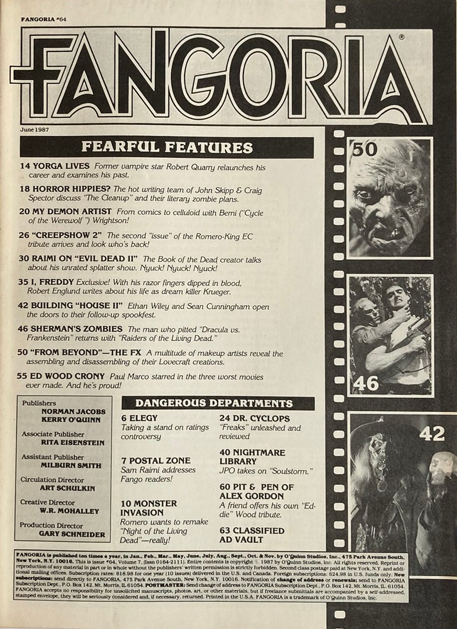 Fangoria Magazine #64 featuring Nightmare on Elm Street 3, Night of the Living Dead, Evil Dead II and more! In like-new condition. Will come bagged for protection.