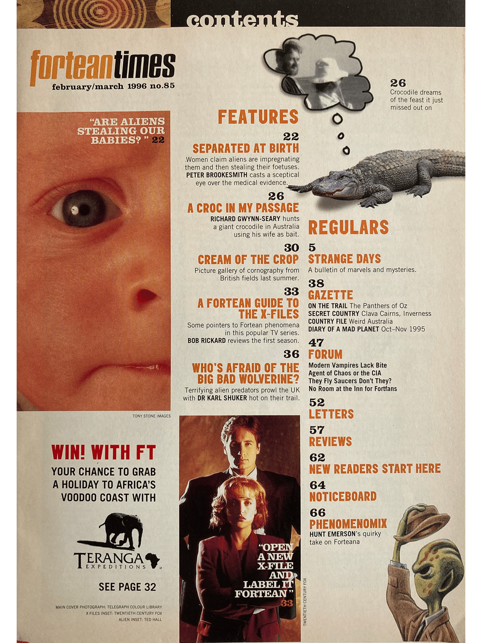 Fortean Times #85 featuring alien impregnations, X-Files, crocodile bait and more! Each issue is bagged for protection.