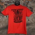 In black on a Red 100% ringspun cotton shirt.