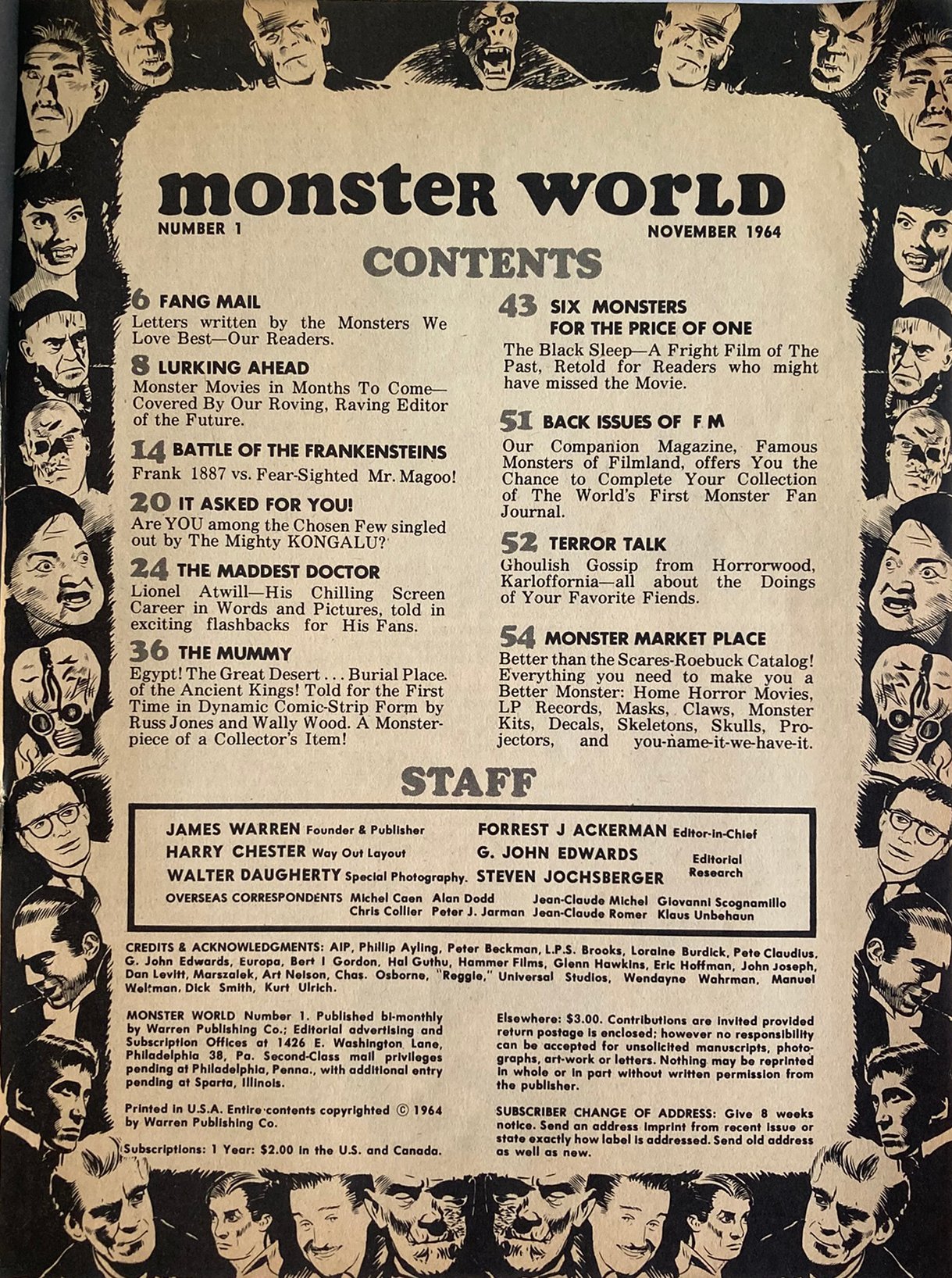 Monster World (Nov. 1964) #1 featuring Boris Karloff, Hammer Films, Bela Lugosi in Bride of the Monster and more! Each issue is bagged for protection.