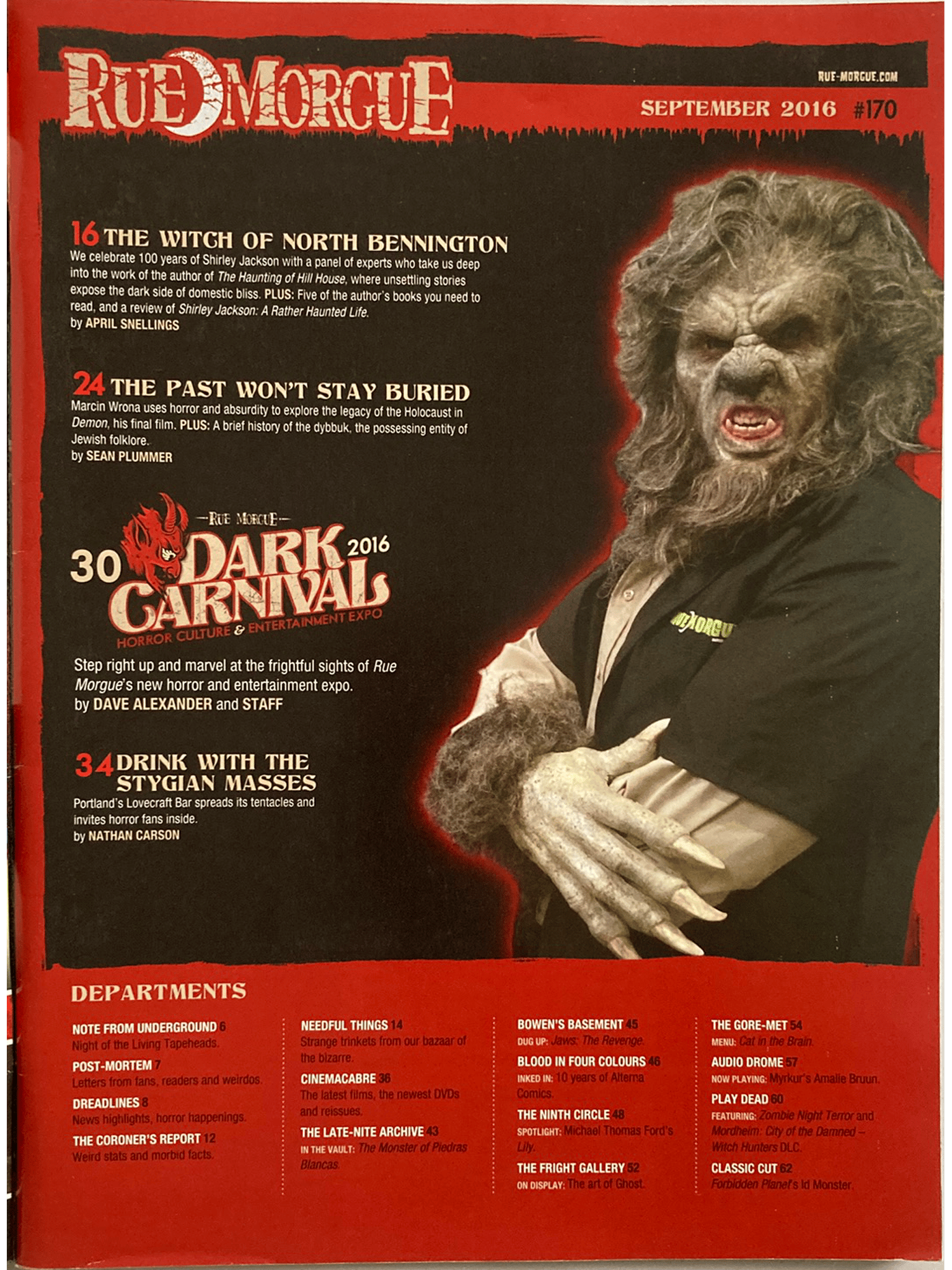 Rue Morgue #170featuring author Shirley Jackson, Dark Carnival, Portland's Lovecraft bar and more! Each issue is bagged for protection.
