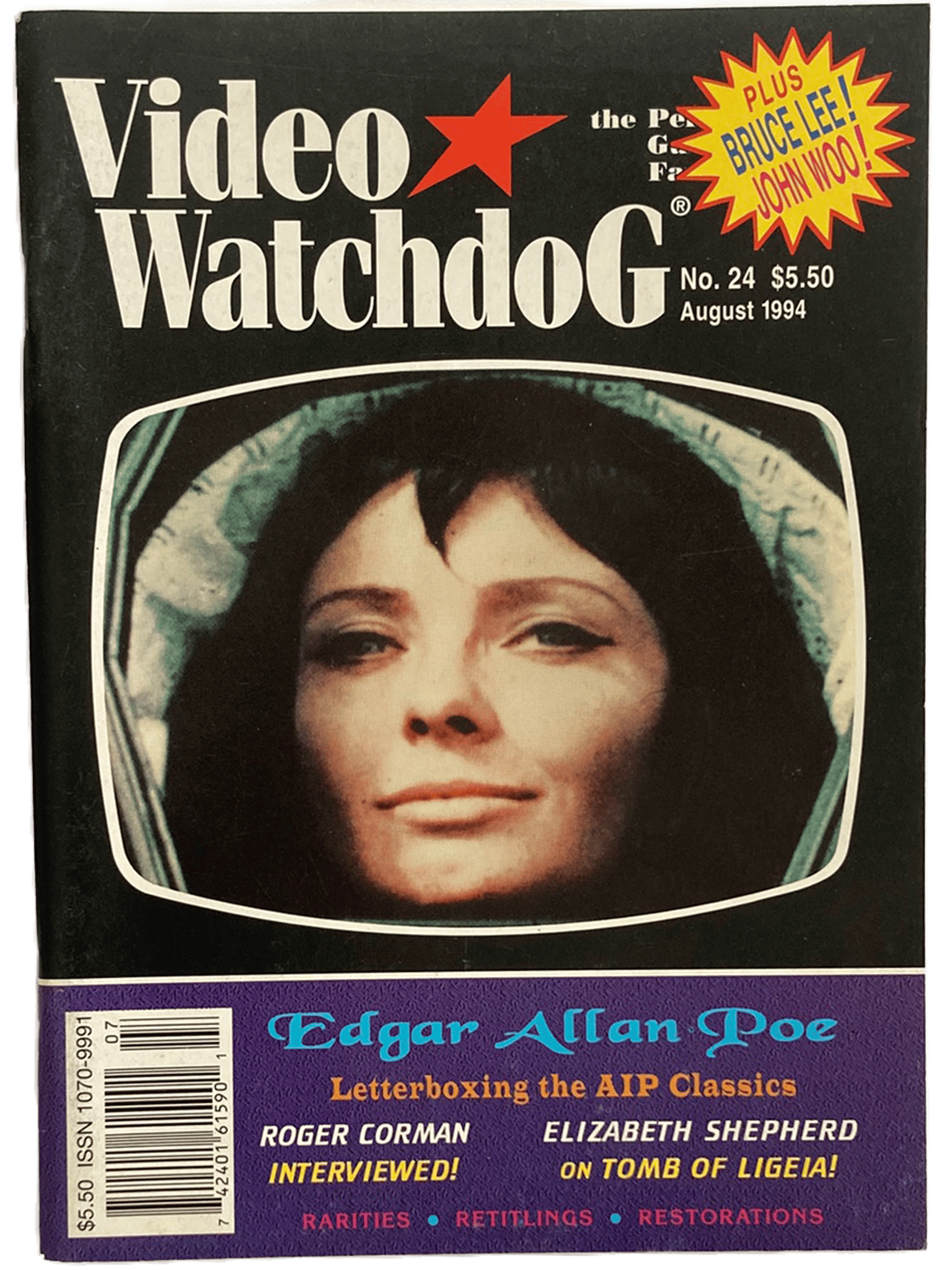 Video Watchdog #24 covering Edgar Allen Poe, John Woo, Bruce Lee, Roger Corman and more! Each issue is bagged for protection.